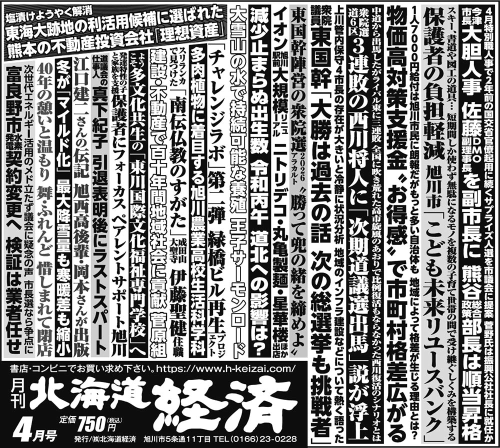 - 旭川市副市長人事表憲章氏続投?高瀬善朗氏勇退か